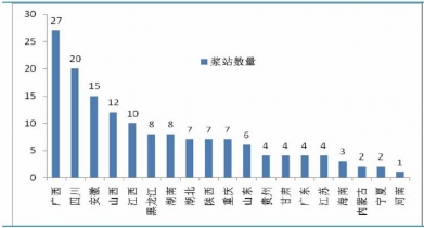 我國(guó)漿站資源各省市分布圖