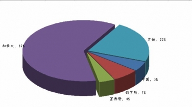 2008-2011年間美國原鋁市場進口以加拿大為主,加拿大進口比重為62%;此外從俄羅斯進口的原鋁占比約為7%。