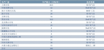 國(guó)內(nèi)主要乙二醇廠(chǎng)家、產(chǎn)能及技術(shù)情況