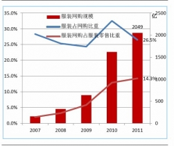 2011年,服裝網(wǎng)購規(guī)模占服裝零售比重達(dá)26.5%