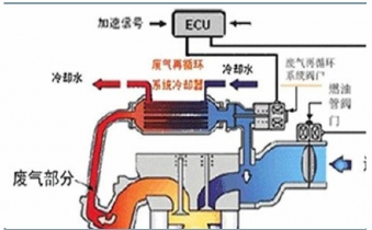 因此,減少NOx排放的主要方法是:中冷技術、廢氣再循環(huán)系統(tǒng)(EGR)等。中冷技術主要是降低經(jīng)增壓器增壓后的空氣溫度,能減少NOx的生成。EGR是利用廢氣再循環(huán),將部分廢氣引回氣缸,由于其具有惰性則將會延緩燃燒過程,從而導致燃燒室中的壓力形成過程放慢來降低燃燒溫度,從而減少NOx的生成。