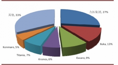全球鈦礦最大的生產(chǎn)商是英國的力拓(RioTinto)集團(tuán),主要擁有加拿大、南非和馬達(dá)加斯加三個生產(chǎn)基地,鈦鐵礦年產(chǎn)量約140萬-150萬噸,2010年產(chǎn)量139.2萬噸。其他產(chǎn)量比較大的生產(chǎn)商還有澳大利亞的Iluka,南非的Exxaro和美國的Kronos等。前六家企業(yè)產(chǎn)量占總產(chǎn)量的67%。