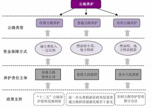 在2011年全國(guó)養(yǎng)護(hù)管理工作會(huì)上,交通部明確提出將堅(jiān)持“分級(jí)負(fù)責(zé)、分門(mén)別類(lèi)、統(tǒng)籌安排、加強(qiáng)監(jiān)管”四個(gè)方法,部省聯(lián)動(dòng)、努力解決養(yǎng)護(hù)資金緊張問(wèn)題。以養(yǎng)護(hù)資金來(lái)源和責(zé)任主體為標(biāo)準(zhǔn),目前公路養(yǎng)護(hù)可劃分為三種類(lèi)型:1)收費(fèi)公路養(yǎng)護(hù),責(zé)任主體為公路管理公司,養(yǎng)護(hù)資金全部來(lái)自通行費(fèi)收入;2)普通公路養(yǎng)護(hù)(大部分為國(guó)省道),責(zé)任主體為省級(jí)人民政府,主要以燃油稅專(zhuān)項(xiàng)返還為資金保障,輔以地方財(cái)政補(bǔ)貼;3)農(nóng)村公路養(yǎng)護(hù),責(zé)任主體是縣鄉(xiāng)級(jí)人民政府,資金來(lái)源是燃油稅返還和地方撥款相結(jié)合。就目前而言,收費(fèi)公路的養(yǎng)護(hù)資金基本可以自給自足,瓶頸主要在于燃油稅和地方財(cái)政對(duì)于國(guó)省道、農(nóng)村公路的支持力度不足。