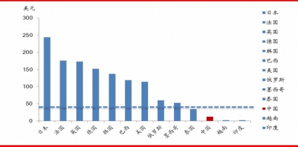 2011年全球人均化妝品銷費(fèi)額(美元)