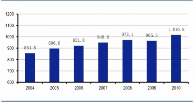 2004-2010年全球汽車保有量單位:百萬(wàn)輛