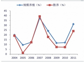 2004-2011年生豬散養(yǎng)與規(guī)模養(yǎng)殖收益率比較