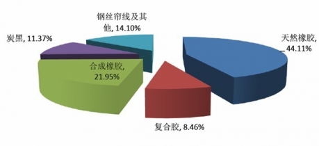 輪胎生產(chǎn)企業(yè)原材料成本占據(jù)總制造成本的80-85%左右。在原材料成本中,橡膠原材料成本占整個原材料成本的60-70%左右。因此,可以看出,橡膠原料成本占據(jù)整個輪胎制造總成本的“半壁江山”。其重要性可見一斑。