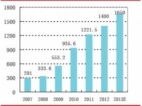 隨著我國天然氣需求的快速增長,進口天然氣也隨之出現了快速增長,國內進口天然氣主要以管道和LNG船運形式進口,其中2009年之前基本都是以LNG的方式進口,2010年后進口的管道氣快速增加。2012年我國累計進口天然氣407.7億立方米,占國內天然氣消費量的28.2%,其中管道天然氣進口217.3億立方米,占53.3%,LNG進口約1400萬噸,占46.7%。預計2013年我國進口天然氣將達530億立方米,增長23.8%,對外依存度為32%,其中LNG進口量1650萬噸,增長14.6%,管道氣進口量300億立方米,增長31.6%,緬甸將成為新的進口氣源地。