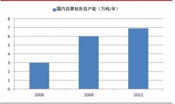 百草枯是全球第二大除草劑品種,2010年全球銷售額超過6億美金。2011年,我國(guó)前七大廠商的百草枯銷量(折百)4.52萬(wàn)噸,我們估計(jì)當(dāng)年全國(guó)總產(chǎn)銷量(折百)約5萬(wàn)噸規(guī)模。2012年國(guó)內(nèi)百草枯產(chǎn)銷量我們估計(jì)相對(duì)2011年增長(zhǎng)約20%,總銷量規(guī)模約達(dá)6萬(wàn)噸/年。我們認(rèn)為基于以下三點(diǎn)原因,未來(lái)百草枯需求仍將持續(xù)增長(zhǎng),預(yù)計(jì)2013年國(guó)內(nèi)百草枯銷量(內(nèi)需+出口)達(dá)到(折百)6.6萬(wàn)噸,增長(zhǎng)約10%: