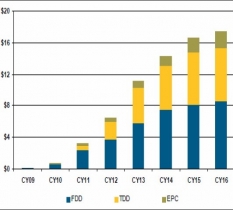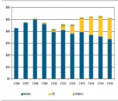 2011-2016年全球LTE設(shè)備支出CAGR40%(十億美元)