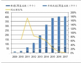 2010-2017全球LTE基站投資額CAGR為36%,其中升級改造是主流。LTE網(wǎng)絡(luò)建設(shè)主要投資集中在基站建設(shè),2012-2015年,全球LTE基站建設(shè)數(shù)量和投資額均呈現(xiàn)高速增長態(tài)勢,其中升級改造是各大電信運營商的主流方式。