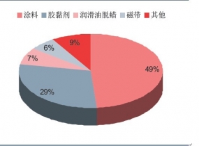 丁酮(甲乙酮,MEK)是一種重要的溶劑,主要應(yīng)用在涂料和孰合劑領(lǐng)域,此外在潤(rùn)滑油脫蠟、磁帶、油墨以及化工產(chǎn)品的生產(chǎn)方而也有一定的消費(fèi)量。我國(guó)對(duì)丁酮的總需求量2009年約31萬噸,2010年約34萬噸,其中涂料和膠粘劑是我國(guó)丁酮的主要消費(fèi)領(lǐng)域,其消費(fèi)量仍占到總消費(fèi)量的78%。