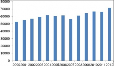 2000年-2012年全球部分地區(qū)生豬存欄量(萬頭)