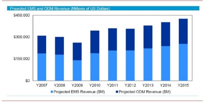 2007-2015年全球EMS和ODM營收預(yù)測:百萬美元
