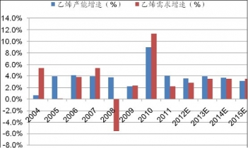 本文導讀:我們未來3-4年的全球乙烯新增產能為500-600萬噸之間,產能增速為3-4%,2013年到2015年產能增速逐年降低。