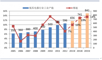 2005-2015年中國低壓電器行業(yè)工業(yè)產(chǎn)值預(yù)測