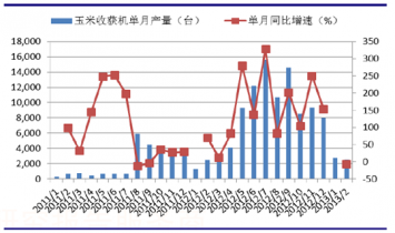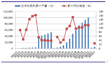 本文導(dǎo)讀:在農(nóng)機(jī)購置補(bǔ)貼政策拉動(dòng)作用下,2010-2012年玉米機(jī)銷售實(shí)現(xiàn)了爆發(fā)式增長(zhǎng)。根據(jù)國(guó)家統(tǒng)計(jì)局統(tǒng)計(jì),2012年中國(guó)25家規(guī)模以上企業(yè)玉米收獲機(jī)械產(chǎn)量達(dá)到100574臺(tái),同比增長(zhǎng)91%。2012年中國(guó)玉米收獲機(jī)最高月產(chǎn)超過1.5萬臺(tái)。