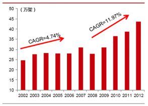 2002-2012年中國(guó)鋼琴表觀消費(fèi)量增速逐步提高