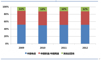 2009-2012中國(guó)寬帶市場(chǎng)運(yùn)營(yíng)商格局