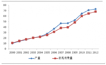 2000~2012年中國(guó)順酐的供需態(tài)勢(shì)分析:萬(wàn)噸