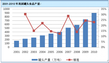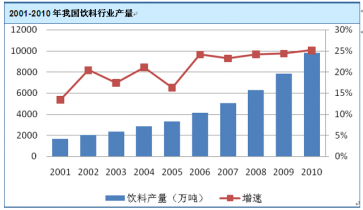 2001 年至2010 年,我國飲料行業(yè)和罐頭食品行業(yè)的產(chǎn)量均實(shí)現(xiàn)了快速發(fā)展。