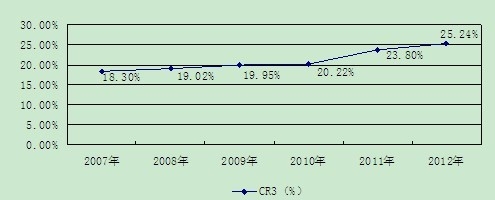 2007-2012年國內(nèi)漆包線行業(yè)市場集中度CR3