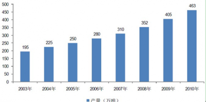2003 -2010 年我國膠粘劑產量 萬噸