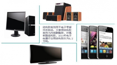 (4)電子電器應用領域 電子電器行業涉及范圍較廣,主要包括各種電子產品及各種家用電器產品,如半導體、LED面板、手機、電腦、音響、電視機等,隨著經濟的快速發展,結構膠粘劑在這些領域有著廣泛的應用。2010年規模以上電子信息制造業整體雖然增速較慢,但部分領域實現了快速增長,電子電器行業用結構膠粘劑約為5.2萬噸。預計在未來幾年,電子電器產業將保持平穩的增長速度,對膠粘劑產品的需求也將逐步增加。