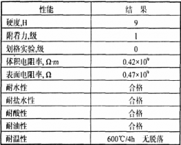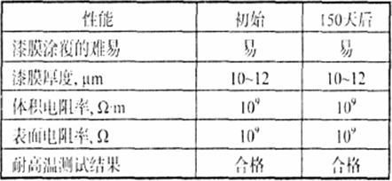 用硅鋼片漆進行涂覆并在工業生產的固化條件下固化成膜,漆膜的性能測試數據見下表。