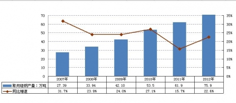2007-2012年我國取向硅鋼產量及增長率