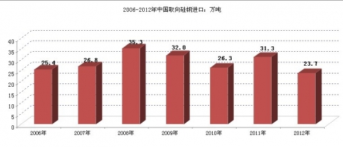 2006-2012年中國取向硅鋼進口量