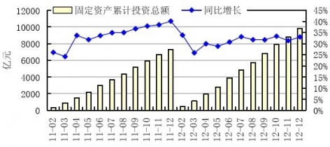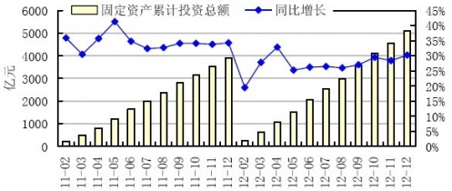 2011~2012年12月住宿和餐飲業(yè)累計固定資產(chǎn)投資額及增速