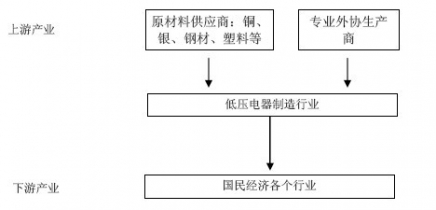 低壓電器行業(yè)的上游行業(yè)為銅、銀、鋼材、塑料等原材料供應(yīng)商及專業(yè)化的外協(xié)生產(chǎn)商,下游行業(yè)涉及到國民經(jīng)濟(jì)的各個(gè)方面。